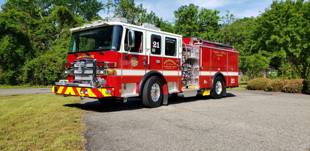 A new Pierce Enforcer pumper arrived last week at Abingdon Volunteer Fire and Rescue. Equipment is being removed from the department’s 1989 pumper, new equipment added to the new pumper and graphics were applied to make it ready for service. The 1989 pumper will be retired from active service. The new pumper, named Engine 21, will respond from the Bena station.