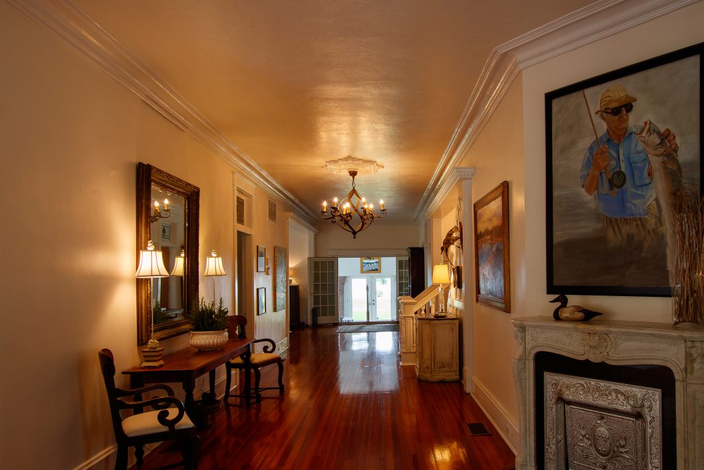 The front-to-back, 50-foot center hallway of Weston Hall.