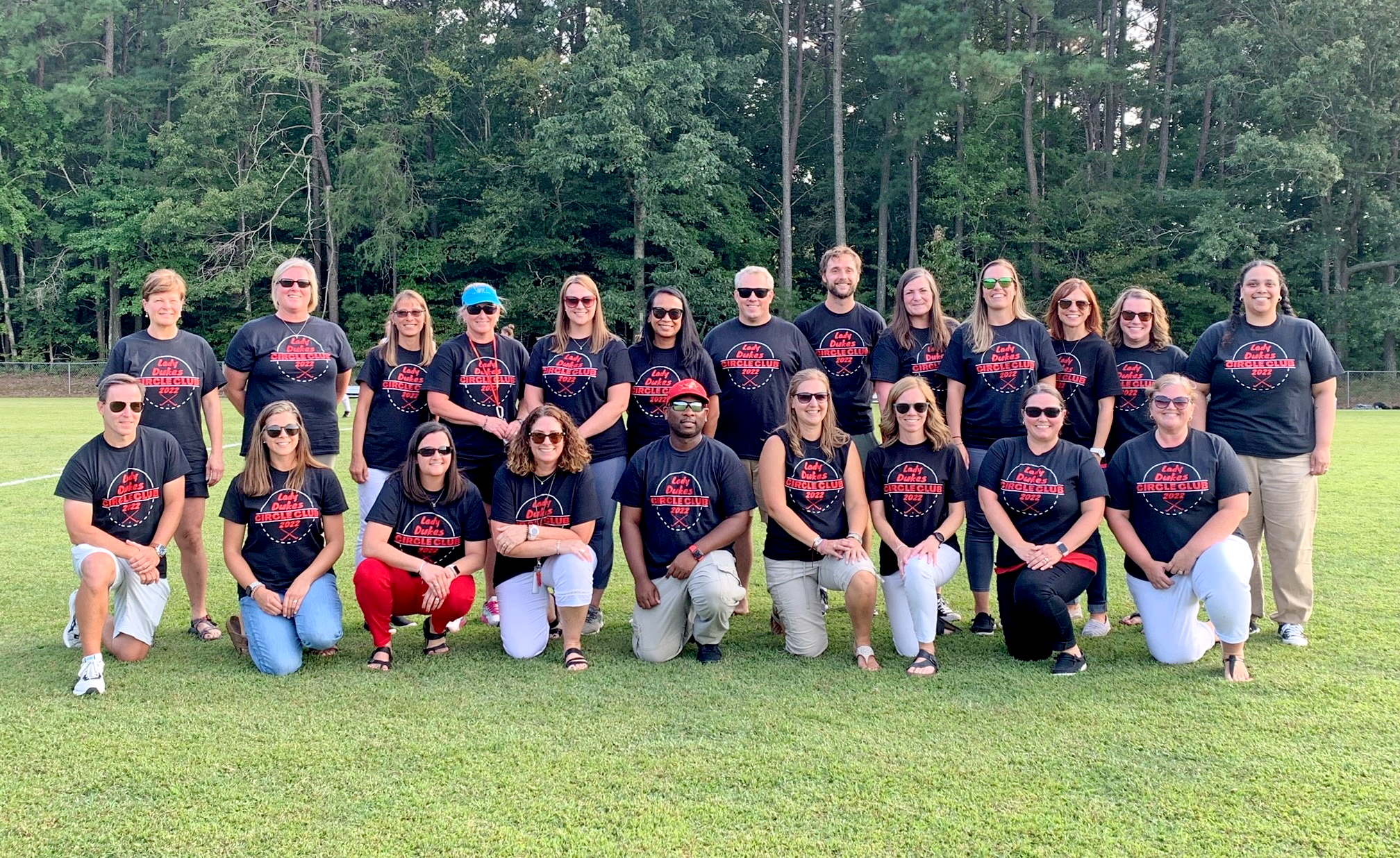 The members of Circle Club were invited to the field for a photo after the game. They are, front row from left, Andrew Wymer, Sara Ralph, Jennifer Rowe, Heather Morgan, Stanley Hundley, Katie Johnson, Megan Harris, Eleanor Talbot, Holly King; back row, Susan Sharp, Amy O’Neil, Stephanie Wible, Anne Winter, Emily Nunez, Sharon Carino, Troy Andersen, Nate Peterson, Shannon Kerr, Kiersten Wilson, Julie Blake, Stephanie Jeffrey, Ashley Foster. Circle Club members not pictured are Anjie O’Beirne, Clark Barkley, Daryl Oakley and Jordan Krevonick.