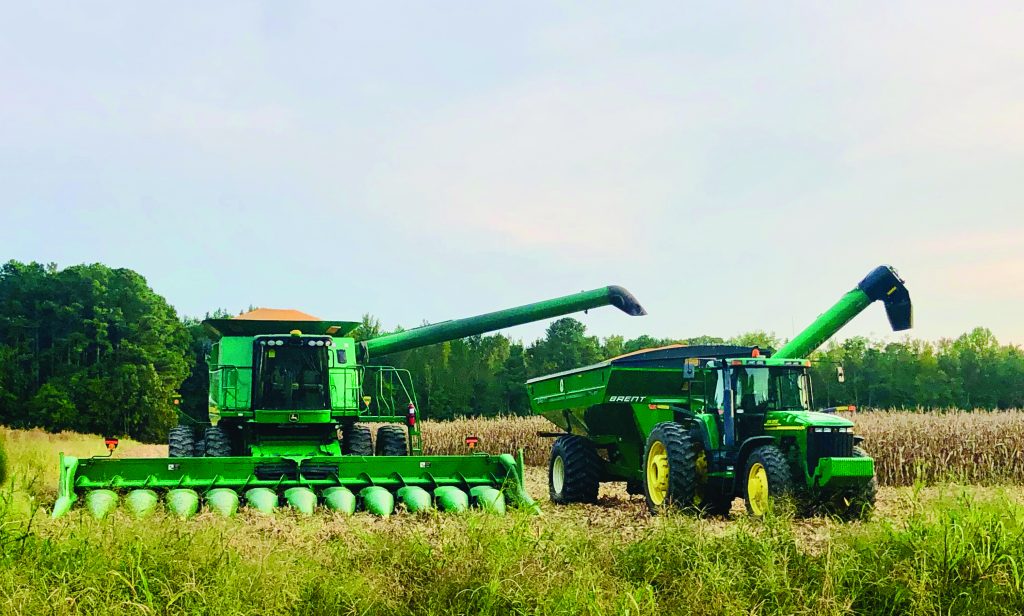 It’s that time of year again. Corn is being harvested in fields around the area this past weekend. In this photo, the equipment in a field in Hayes sits idle after a busy day, waiting for the process to resume the next day.