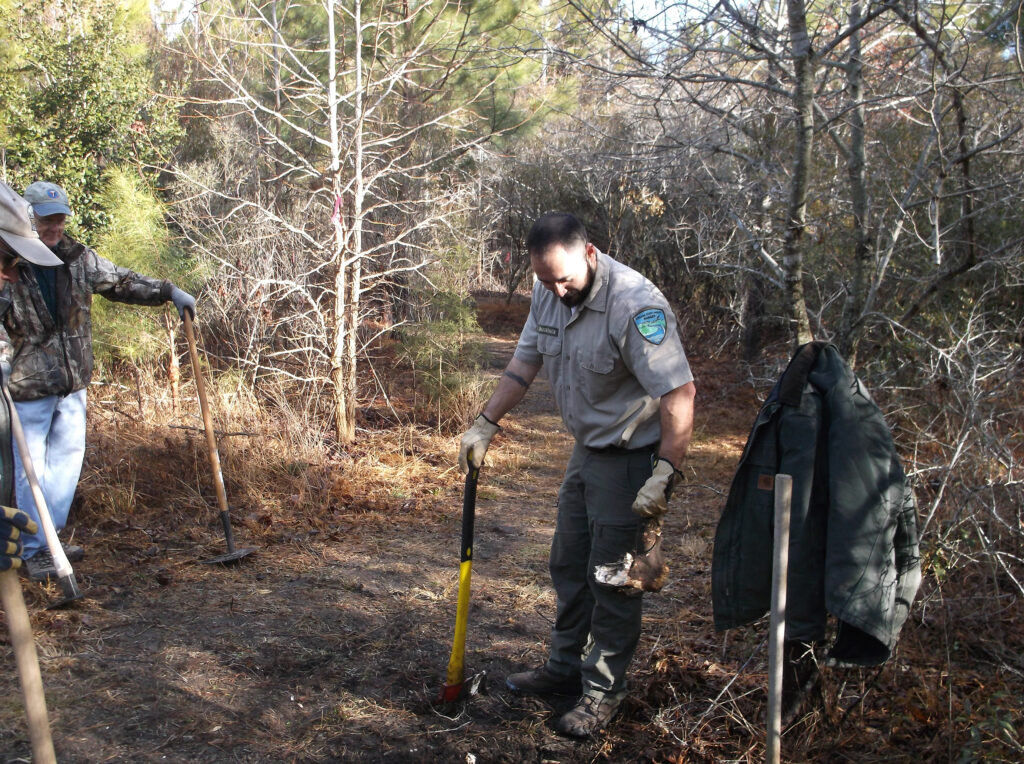 On the morning of Saturday, Feb. 1, a group of dedicated Gloucester Rotarians came together to work on the Antler Trail at Machicomoco State Park, Hayes. Above, Machicomoco’s Chief Ranger Josh Mazzatenta leads the volunteers in the effort. Below, Brian Kirschbaum cuts one of the trees, with Steve Humphrey behind him. Other volunteers helping that day included Steve Wood, Jon Lucy, Craig Monsen, Henry Moncure and Lester Sterling....