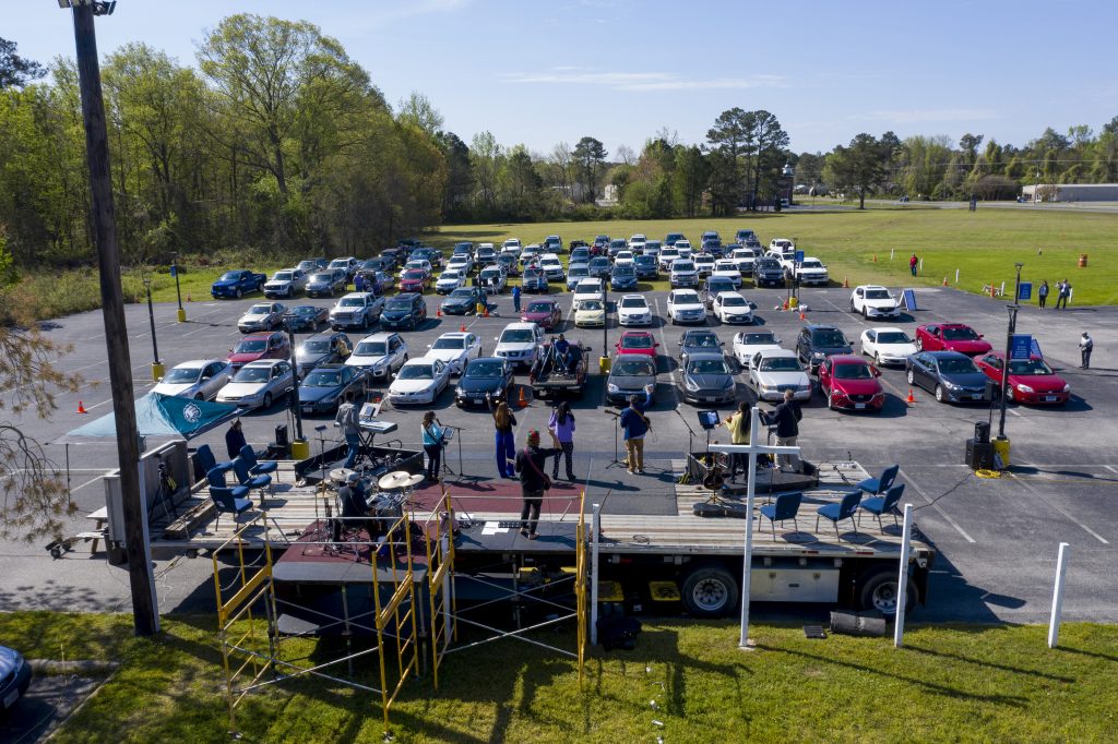 Much like other churches this Easter, LightHouse Worship Center, Hayes, held two drive-in Easter services in its parking lot.