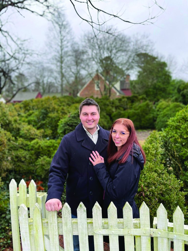 When Christmas came around, Blair said knew he wanted to propose. People had told him that he would know when the moment was right. They spent Christmas Eve in Charlottesville visiting her family, and he told her family members what he was going to do. The next day was spent with his family in York County. Then on the way back, as they drove through Gloucester’s Main Street, he suggested they stop and take a photo in front of the Christmas tree in the Court Circle. That was when he popped the question.