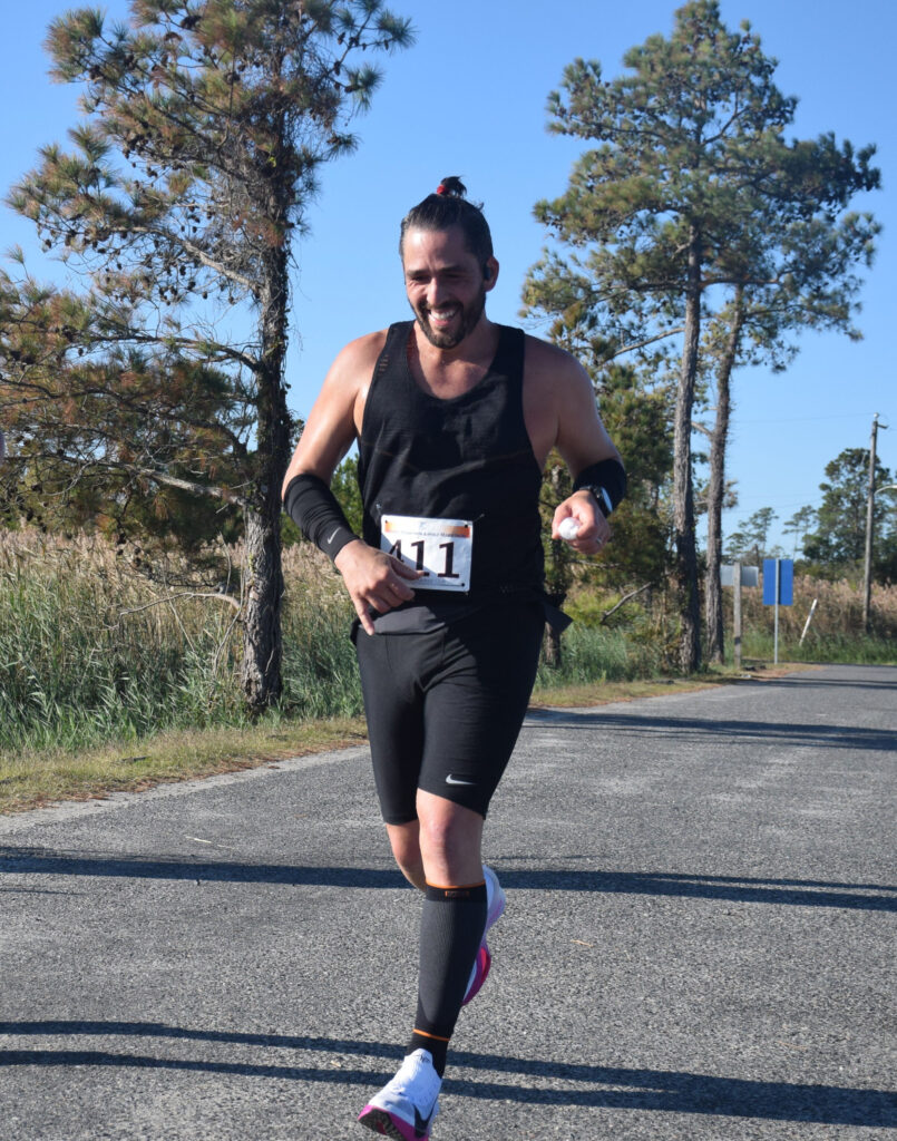 Mathews County’s roads were filled with runners Saturday morning for the fourth annual Mathews Marathon, which started and ended in Mathews Court House. The event, sponsored by the Mathews Outdoor Club, included a 26.2-mile marathon, 13.1-mile half-marathon, and team relay marathon, and attracted 138 runners. Winners, from left, were Christian Toro, 38, marathon winner, 3:28.21.1; Alex Sharff, 21, first female, 3:36.53.2; Andrew Greve, 19, half-marathon winner, 1:21.52.5; and Anna Strait, 64, first female half-marathoner, 1:47.03.5. Team Sigma Skibidi won the marathon relay. Event participants and family members were treated to a “Carbo Load” pasta dinner on Friday afternoon courtesy of the Mathews YMCA and Mathews Women’s Giving Circle.