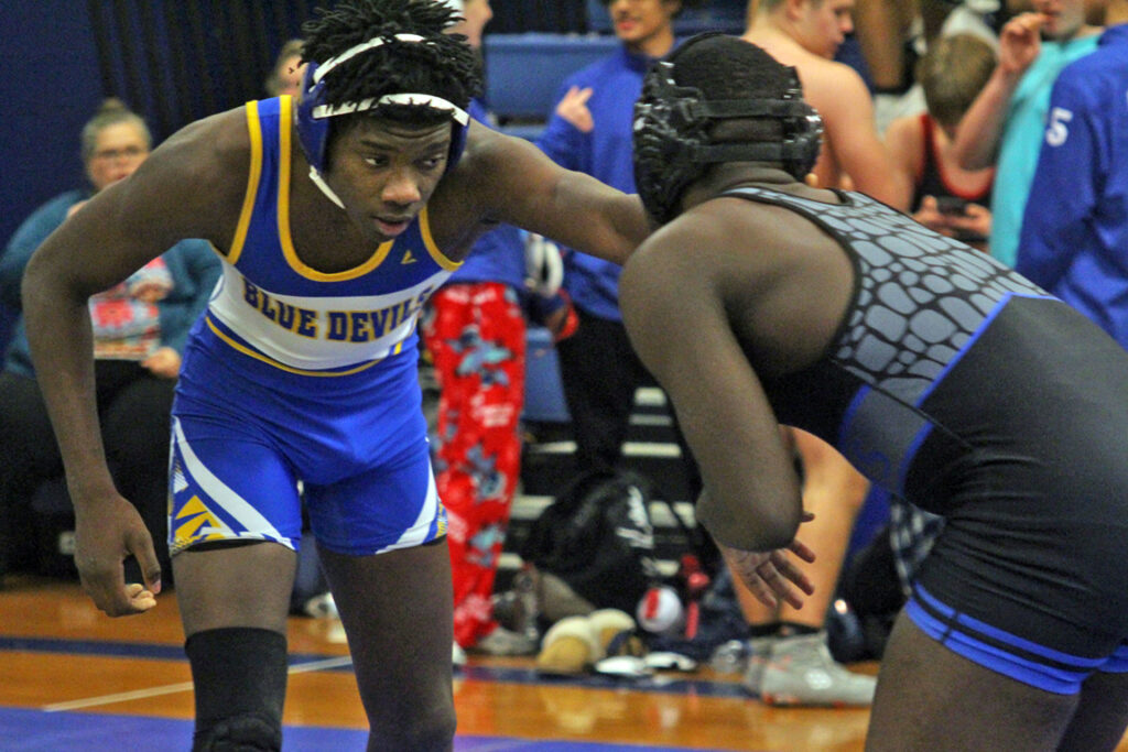 Blue Devil Roane Gray tries to get the advantage over his opponent in Saturday’s tournament.