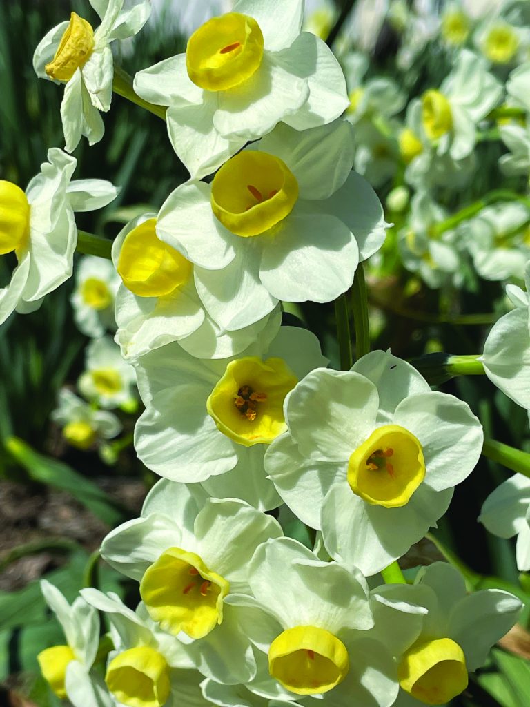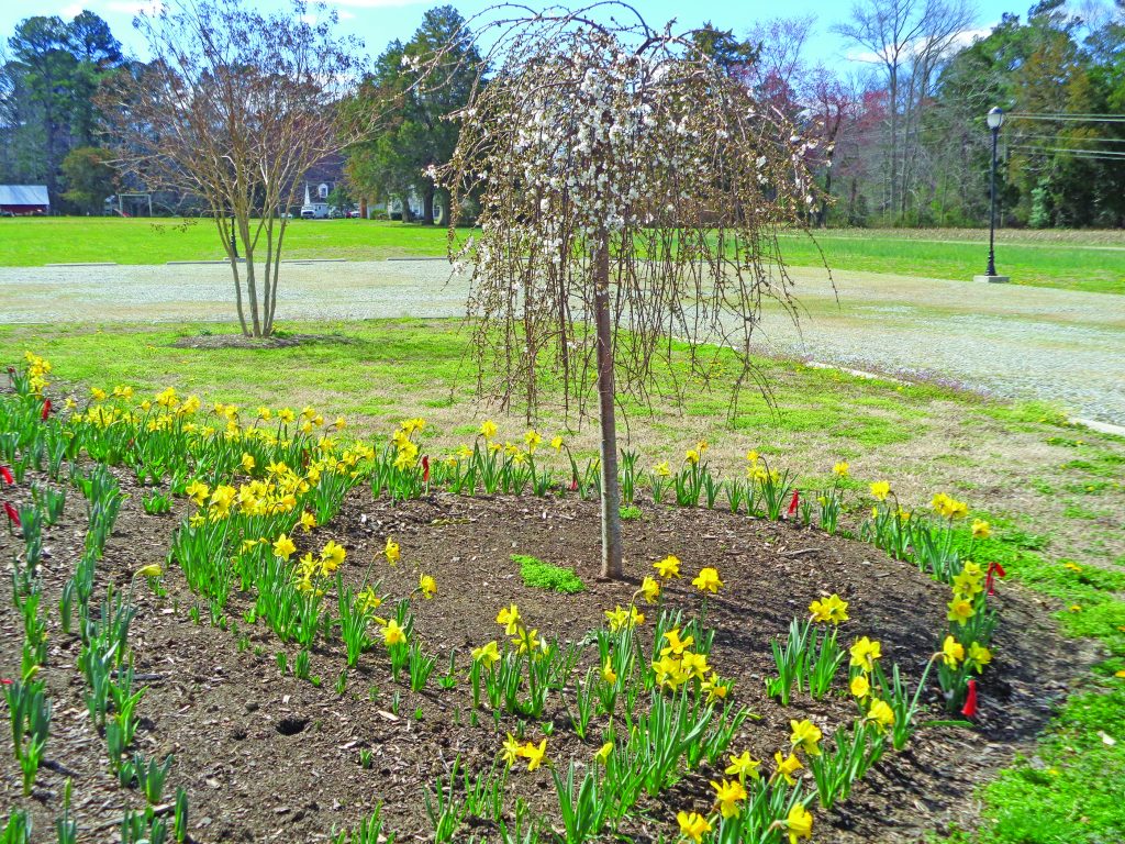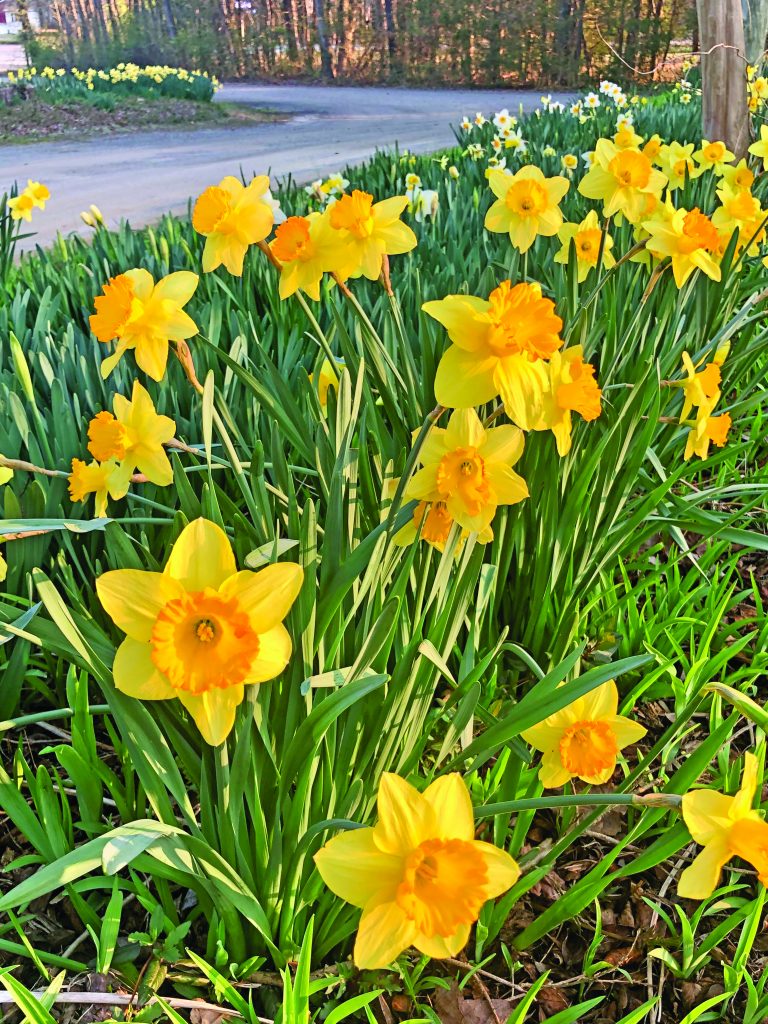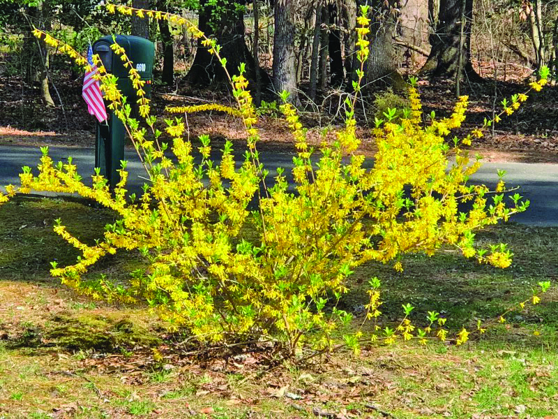 Variety of flowers from spring bulbs, sent by Cheryl Battle of Bavon.The forsythia is in full bloom at the home of Ginger Rowe in Gloucester.Daffodils in bloom at Ark Park, spotted by Linda Tjossem.Spring surrounds Patti Procopi in Gloucester, who photographed camellias in bloom and the first egret of the year on Cedar Bush Creek.Pat Rawls of Foster showed the landscaping at Faith Baptist Church, Mathews, with thanks to Brent & Becky’s Bulbs for “adding freely to our community, loveliness for all to enjoy.”Louise Witherspoon of Port Haywood sends photos of dead nettle, which is alive, and casting a purple haze now over fields and lawns; speedwell, a common weed with tiny blue flowers; and variegated vinca, an invasive vine with spring flowers.Two camellia japonicas from Judy Moughon of Mathews, along with helleborus and paperbush.Julie Shields of Hayes, took her camera into the woods at Beaverdam Park. She didn’t find any flowers, but came across these interesting spider webs.