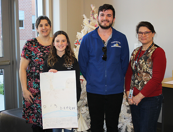 Page Middle School seventh grader Zoey Berezansky holds her first place-winning poster in the Tidewater Soil and Water Conservation District’s annual poster contest. Zoey received a $25 gift card for winning in her age group. With her are her mother, Dawn White, at left, Sam Markwith of the TSWCD, and her science teacher, Judy Green....