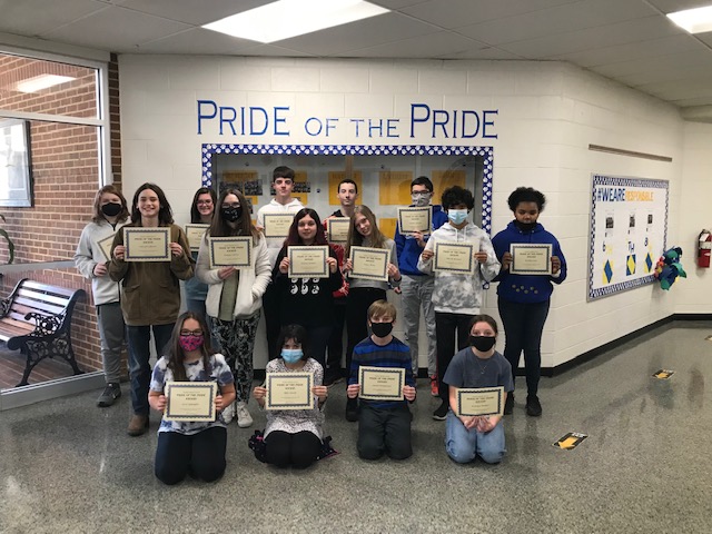 The Pride of the Pride at Peasley Middle School consists of students who display positive behavior of being responsible, respectful and engaged. In top photo, eighth graders receiving the honor for January were, front row from left, Dylan Jones, Kai Valcourt, Kaitlynn Otteni, Avalynn Hutton, Ana Puente Rosario; standing, Marshall Bowden, Charlie Arnone, Adyson Jeffrey, Noelle Anderson, Maddy Nelson and, not pictured, Haydin Middlebrook and Jeremiah Perkins. Seventh graders (middle photo) named to the Pride of the Pride are, front row from left, Lexi Spangler, Allie Smith, Owen Henderson, Kaitlyn Parker; standing, Conner White, David Collawn, Addison Keister, Tempie Cutter, Jack Gibson, Briana Romero, Camden Phelps, Piper Hicks, Landon Moore, Marek Barnett and Jordyn Opie. Sixth graders (bottom photo) joining the Pride of the Pride in January were, front row from left, Lilli Watts, Brayden Creech, Michael Turpin, Carter Flippin, Bianca Mosher, Rhiannon Morse; standing, Anthony Nester, Bryce Strader, Charlotte Honchak, Rosalie Lightner, Sophia Levitov, Jacob Stump and Gabe Johns.