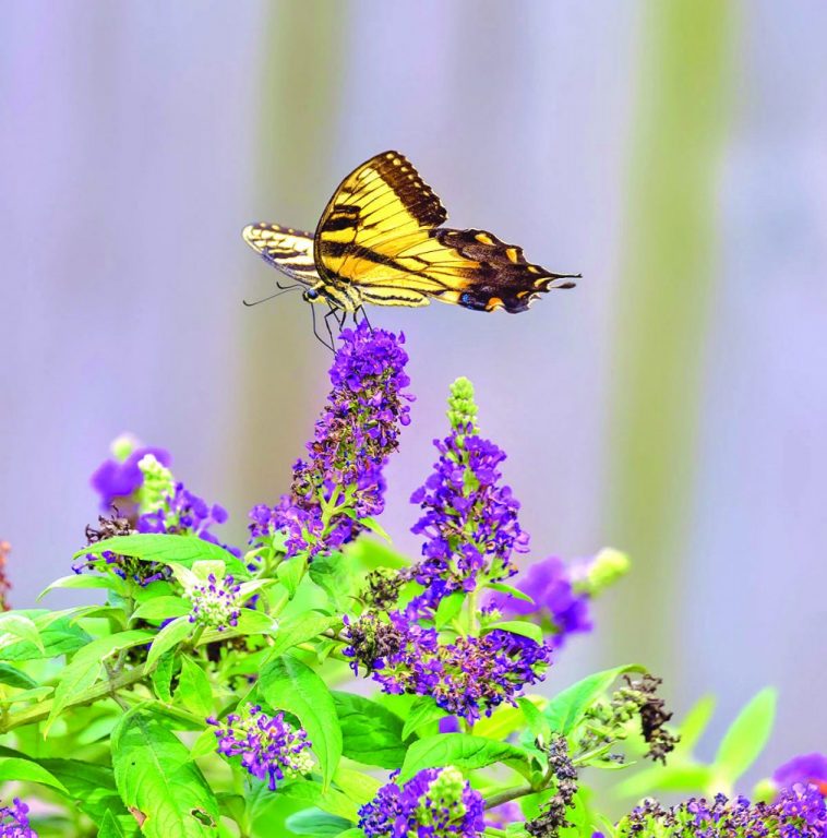 Yellow swallowtail on a zinnia at the home of Julie Shields of Hayes.