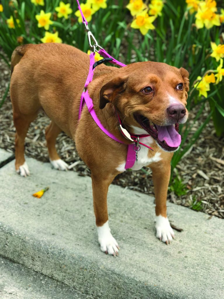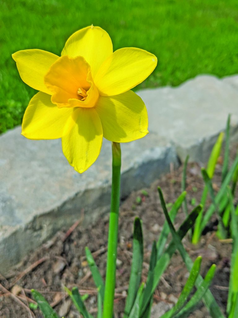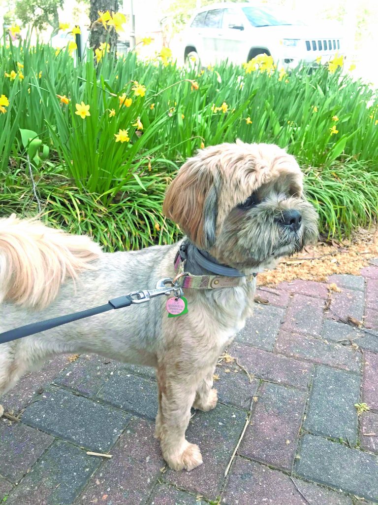 Ziggy enjoyed a walk and the daffodils on Main Street when Sarah Kennedy brought him to work with her, a week ago before she began working from home.