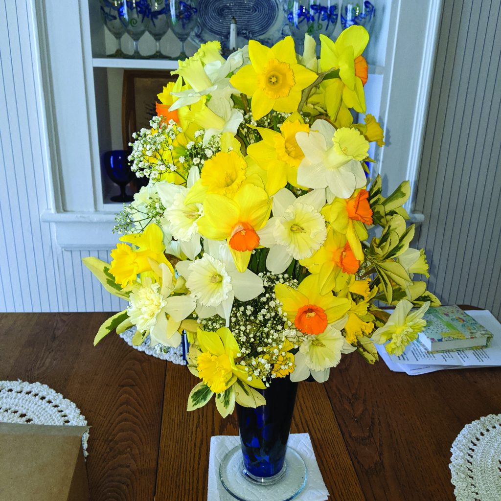 Bill Thomas sent this photo of a daffodil arrangement on the porch of Valhalla, his Gloucester Main Street home.