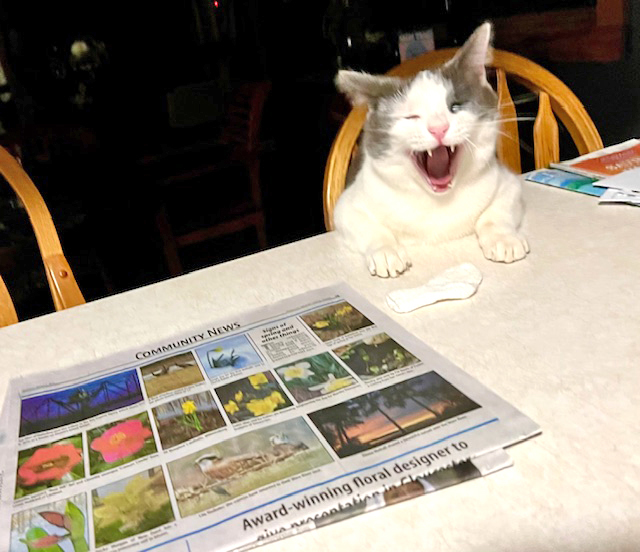 Patch reacts to photos in the Gazette-Journal; sent by Patch’s person Lila Youkeles.