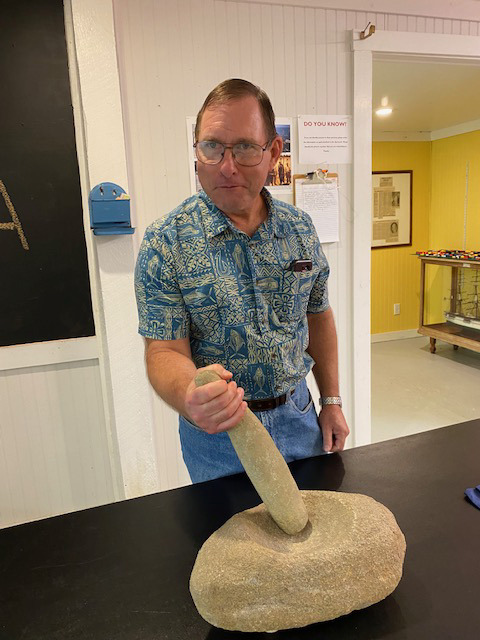 Ron James of Dutton took the Native American mortar and pestle found on family property for ID at What’s It Night, held Aug. 23 at the Mathews Historical Museum. No date could be assigned, a release said. James and others took artifacts for evaluation and identification provided by the Fairfield Foundation. Thane Harpole, foundation co-director, provided an overview of the area’s archaeology dating to prehistoric times, and discussed digs at Werowocomoco, Place of the King, where Powhatan reigned in the early 1600s.