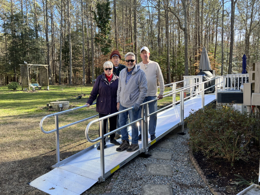 Members of the Abingdon Ruritan Club recently installed a wheelchair ramp at the home of Bill Jordan, a former member of the club. Among those involved in the project were, front row from left, Sandy Jordan (also a former member of the ARC), Allen Scales; back row, David Kyle, Rick Taylor and, not pictured, Yvonne Scales....