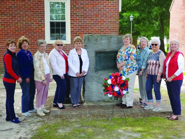 To mark Memorial Day, members of the local DAR and UDC chapters placed wreaths at three locations in Mathews on May 29. Above, the Cricket Hill Chapter, Daughters of the American Revolution, placed wreaths on the DAR Monument at the historic Mathews courthouse and at the Courthouse Square for Memorial Day. Shown at the DAR Monument are, above from left, Mari Gibbs, Patty Hertzler, Colanne Bunting, Mimi Kleintop, Carolyn Hogge, Regent Lynda Lancaster-Loyd, Gay Pfister, Rebecca Morgan and Patricia Reed. The granite monument was erected in May 1929. Below, the Captain Sally Tompkins Chapter United Daughters of the Confederacy placed a wreath on the grave of Capt. Sally Tompkins, who was born at Poplar Grove and is buried at Christ Church Cemetery in Mathews. During the Civil War she established a private hospital in Richmond to care for the wounded. UDC members taking part included, bottom photo from left, president Marilyn Iglesias, Rebecca Morgan, Mimi Kleintop, Lydia Connelly, Mary Hun...